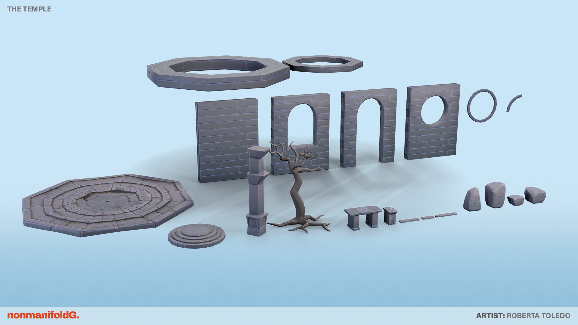 “The Witch and the Temple” è il progetto che ho sviluppato come tesi finale per il master in Game Assets presso la Rainbow Academy. Realizzato in un mese, il lavoro è completamente game-ready grazie a una fase di ottimizzazione accurata. Per la creazione, ho utilizzato diversi software professionali come Maya, ZBrush, Adobe Substance Painter, Marmoset Toolbag, Unreal Engine 5 e DaVinci Resolve, garantendo un risultato di alta qualità sia in termini visivi che tecnici.